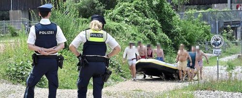 Hier geht‘s nicht weiter: Gleich bei der ersten kontrollierten Schlauchboot-Gruppe am Isarwehr in Baierbrunn waren zwei alkoholisierte Insassen dabei. Ihnen droht ein Bußgeld.