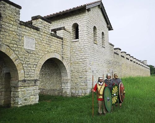 Originalgetreu: Martin Beck, Roland Kirschner und Hendrik Rohde (v.l.) vorm Kastell in ihren Legionärsrüstungen. © Oliver Hummel (2)