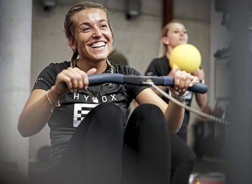 Schwitzen fürs Team: Antonia Vater (links) trainiert an der Rudermaschine, Sara Castan mach