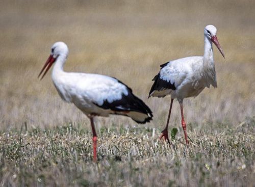 Störche auf einem Stoppelfeld. © Jens Büttner/dpa