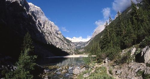 Die Blaue Gumpe in voller Pracht. Seit einem Bergsturz lag der Bergsee im