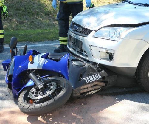 Das Motorrad des 41-Jährigen war halb unter das Auto gerutscht. Der Biker schwebt in Lebensgefahr. © H. Herold
