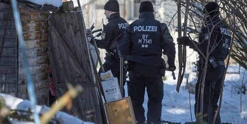 Durchsuchung in der Gartenlaube: Polizisten auf dem Grundstück in Haar (Kreis München) im Jahr 2016. © Matthias Balk/pa