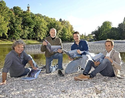 Das Autoren-Team an der Isar: Bernd Ritschel, Christian Neureuther, Felix Neureuther und Michael Ruhland. © Breiteneicher/Abr-pictures