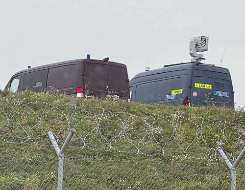 Auf Drohnen-Jagd mit Laser? Diese Fahrzeuge standen am Flughafengelände.