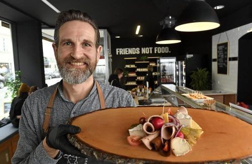 Bei ihm gibt‘s „keine Salami“: Markus Dorsch von der veganen Fleischerei in München. © Marcus Schlaf