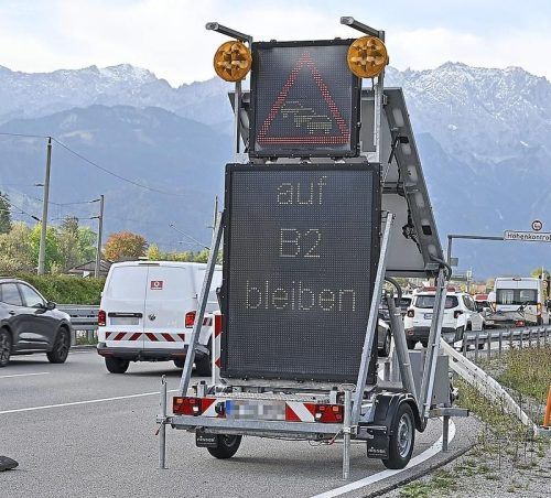 Bei Stau auf der B2 bleiben, heißt es bisher in Farchant. Doch solche gut gemeinten Appelle bringen fast nichts. © THOMAS SEHR