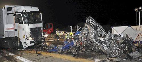 Auto unter Lastwagen geschoben – der Fahrer stirbt