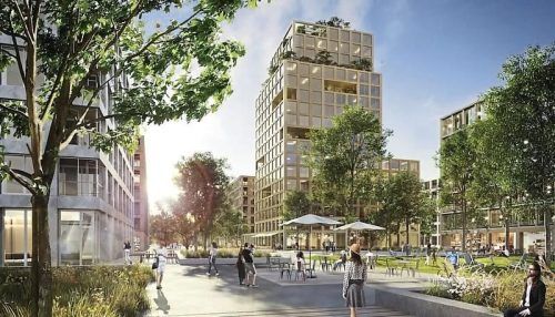 Erster Entwurf: So könnte das Bahnhofsquartier Taufkirchen aussehen. © Steidle Architekten