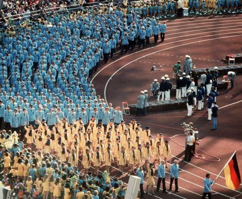 Olympische Sommerspiele 1972 in München: Der Einmarsch der damaligen westdeutschen Athleten und Athletinnen. © dpa