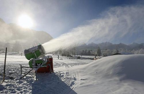 Kunstschnee aus der Kanone: weiße Pracht für Oberbayern. © Karl-Josef Hildenbrand
