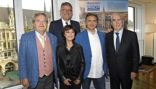 Bei der Buchpräsentation in München: Helmut Markwort, Wolfram Weimer, Simone Rethel-Heesters, Manfred Otzelberger und Theo Waigel (v.l.). © Michael Tinnefeld/API