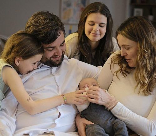 Oliver Bernt mit Familie: Frederik ist zwei Monate alt, die Mädchen sind sieben und 15 Jahre.