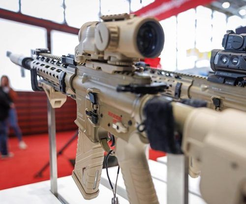 Das Sturmgewehr G95, ausgestellt bei einer Messe. © dpa