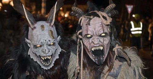 Ihre Masken sind wirklich zum Gruseln! Am Wochenende waren die Raublinger Perchten am Christkindlmarkt des Ayinger Bräustüberls im Kreis München zu Gast. Mit dem traditionellen Perchtenbrauch hat diese Gruppe allerdings wenig zu tun. Sie treiben keine böse Wintergeister aus, sondern sind als Krampus