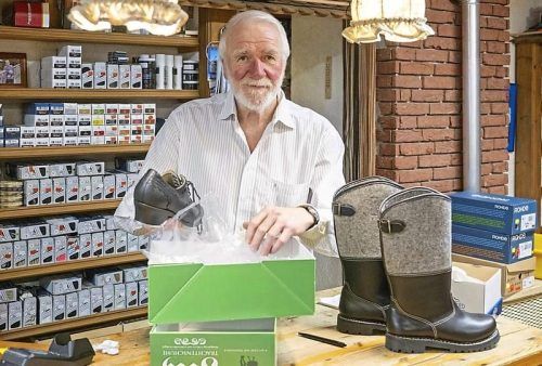 Im Schuhgeschäft von Michael Röhrl riecht es nach echtem Leder. Auch nach 58 Jahren kann er von diesem Geruch nicht genug bekommen. Alles hier im Laden ist handgemacht. Sogar die Theke, die mit kleinen Satteldächern aus Holzschindeln bedeckten Regale u