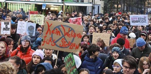 Die Initiative „Schulstreik gegen Wehrpflicht“ rief am Freitag bundesweit zu Protesten auf. In Giesing gingen etwa 1300 Menschen auf die Straße. © Markus Götzfried
