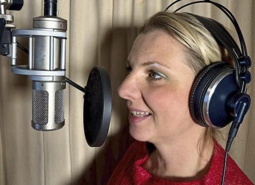 Arlett Drexler bei der Arbeit vor dem Mikrofon.