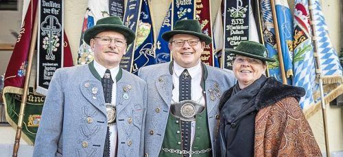 Zwei Generationen Trachtenverein: Sohn Andreas (Mitte) mit seinen Eltern Bärbel und Herbert. Von seinem Vater übernahm er den Vereinsvorsitz. © A