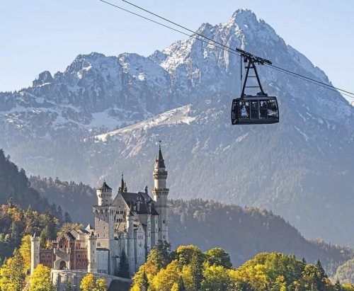 Die Tegelbergbahn bei Schwangau mit Schloss Neuschwanstein im Hintergrund. © Tegelbergbahn/Instagram