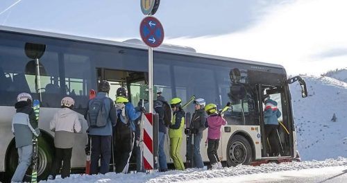 Bus statt Auto: Viele Skifahrer nutzten den Skibus, wie hier in Bayrischzell. Trotzdem standen sie im Stau.
