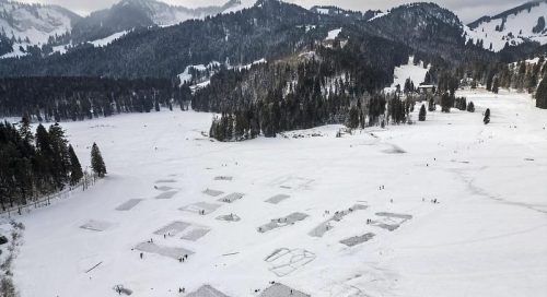Freigeschaufelte Flächen: Auf dem Spitzingsee im Kreis Miesbach tummeln sich Schlittschuhläufer und Hobby-Eishackler. © Peter Kneffel/dp