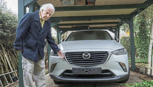 Ingo Schwan aus Seeshaupt zeigt auf das fehlende Kfz–Kennzeichen. © dp-pictures