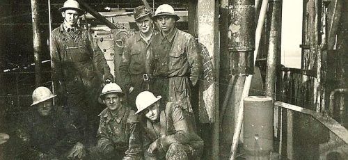 Pioniere der Erdölförderung: die Ampfinger Bohrmänner in den 50er-Jahren. © Gemeindearchiv Ampfing
