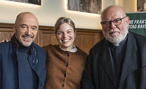 Austausch erwünscht: Kardinal Marx (r.) und Ski-Star Neureuther mit Grünen-Fraktionschefin Schulze. © Mörk/Grüne