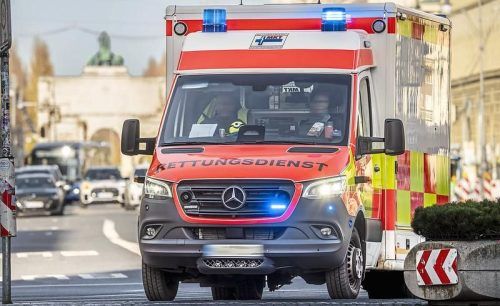 Einsatz: ein Rettungsdienst-Fahrzeug in München. © IMAGO