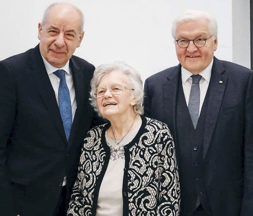 Anna Hahn mit Staatspräsident Tamás Sulyok (l.) und Bundespräsident Frank-Walter Steinmeier.
