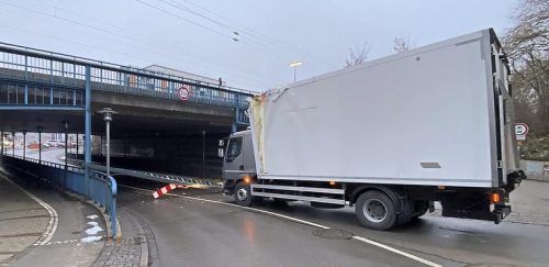 Gauting – Verkehrschaos in Gauting (Kreis Starnberg): Weil ein Lastwagen mit einer zu hohen Fahrzeughöhe am Freitagmorgen gegen eine Unterführung gekracht war, ist es zu einer mehrstündigen Vollsperru