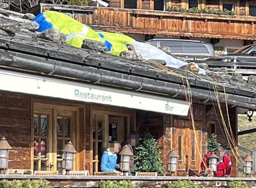 Eine 56-jährige Münchnerin, die in Österreich lebt, ist in Alpbach (Tirol) mit ihrem Gleitschirm auf die Terrasse eines Gastronomiebetriebs gestürzt. Der Schirm breitete sich auf dem Dach des Lokals aus (Bild). Sie hatte beim Landeanflug plötzlich an Höhe verloren und verfehlte ihren vorgesehenen La