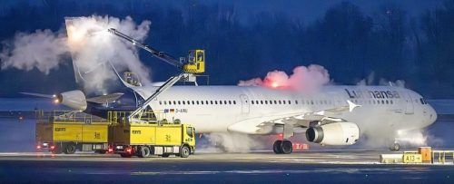 Starker, nasser Schneefall führte zu überdurchschnittlich langen Enteisungszeiten am Flughafen. © Peter Kneffel/dpa