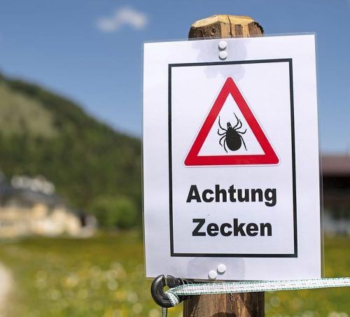 Wer so ein Schild wie das hier in Kreuth beim Wandern sieht, sollte sich am Abend besonders gut nach Zecken absuchen. © Hoppe/dpa
