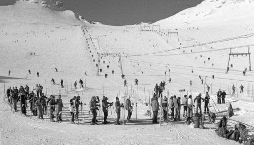 Schlange stehen für den Schlepper: Beliebt war der Schneefernerkopflift (links) einst, genauso wie der Gletscherseelift. Die Anlage rechts im Bild wurde bereits 2012 abgebaut. © Bayerische Zugspitzbahn