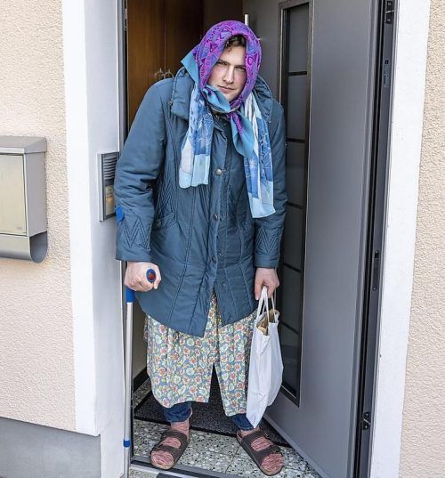 Der Lockvogel: Felix Haas verkleidete sich als alte Frau, um Schock-Anrufer hereinzulegen. © Merzbach/NEWS5