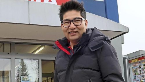Darf endlich arbeiten: der Afghane Ali Motaki vor der Supermarkt-Filiale. © Rutt