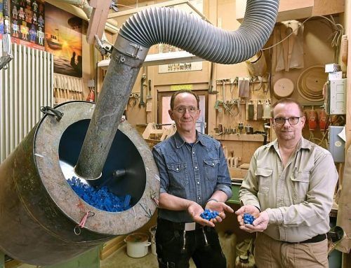 Spielzeug, das per Hand gemacht wird: Arwed (links) und Horst Loquai vor der Trommel, in der Holzteile