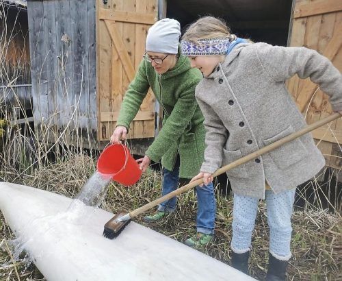 Jetzt ist Putzen angesagt: Veronika (links) und Tochter Luzia Schmötzer säubern ein SUP-Brett, so wie es sich gehört. © Michaela Sperer