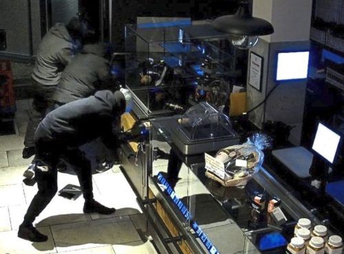 Von der Kamera erwischt: Die Einbrecher an der Auslage der Garchinger Metzgerei. © Privat
