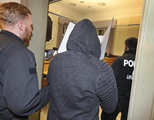 Der Angeklagte wird in den Gerichtssaal geführt. © Hildenbrand/dpa