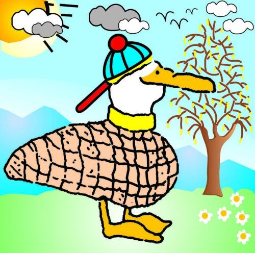 Gestern Abend watschelten wir hinter Waldemar her zum Dorf bis in einen Garten. „Setzt euch und seid ganz still“, brummte der Waschbär. Dann hörten wir ihn: einen wunderschönen Vogelgesang. „Das ist eine Nachtigall“, schnatterte Agnes leise. „Sie ist seit ein paar Tagen die ganze Nacht lang zu hören