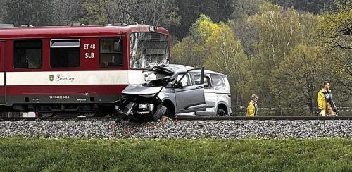 Mitgeschleift: Der Unfallwagen nach der Kollision mit der Salzburger Lokalbahn. © 7aktuell