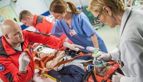 Rettungsdienst und Ärzte versorgen einen Patienten in der Notaufnahme. © Getty