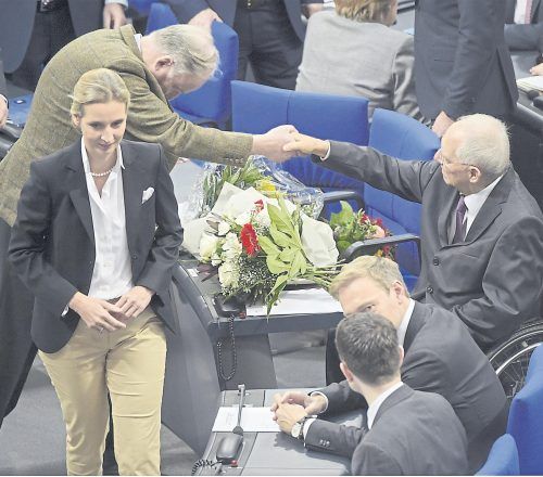 München – Erst ist da nichts. Im Moment der Verkündung verharrt Wolfgang Schäubles Gesicht ungerührt. Die Augen fast geschlossen, die Mundwinkel starr. Nur ein leichtes Nicken wiegt sein Kinn. 501 Ja-Stimmen, 173 gegen ihn, 30 Enthaltungen, ein Votum ungültig. Nun fehlt noch ei