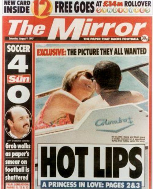Den Kopf verdrehtDas „Bild, auf das sie alle gewartet haben“, ist ein Schwindel. Die erste Annäherung zwischen Lady Di und Dodi Al Fayed 1997 sah anders aus. Der „Mirror“ verdrehte ihm den Kopf – im Original sieht Dodi Di nicht an.