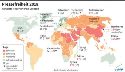 Berlin – Behinderung der Berichterstattung, Zensur und Repressionen gegen Journalisten gibt es in vielen Ländern. Der Tag der Pressefreiheit erinnert daran. Dass es in Nordkorea und Turkmenistan in dieser Hinsicht finster aussieht, ist bekannt. Dass Regierunge