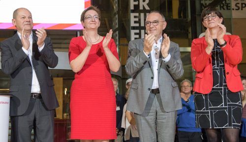 Berlin – Die Erlösung ist es noch nicht, trotzdem können die vorläufigen Sieger erst einmal aufatmen. Klara Geywitz ringt sich zu einer Umarmung von Saskia Esken durch – beide Frauen können sich zu den Gewinnern des ersten Wahlgangs beim SPD-Mitgliederentscheid z