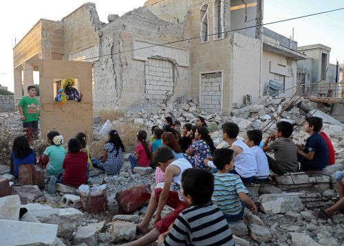 München – Walid Abu Rashed steht hinter einem Verschlag aus Pressspanplatten. Seinen Kopf hat er durch das eckige Loch in der Mitte gesteckt. Sein schwarzes Haar steckt unter einer blonden Perücke, in der rechten Hand hält er einen blau-gelben Uhu. Vor ihm sitzen etwa zwei D
